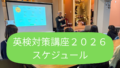 もちろん、英検を受けない方も参加できますが、テキストは英検のトピックに沿ったものを使用している点をご理解ください。